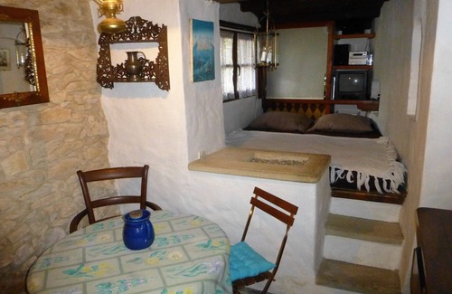 Independent studio 26 m² for 2 people in stone Mazets in full scrubland, equipped kitchenette, W-C bathroom, corner bath.