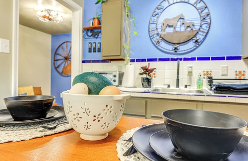 Experience the beauty of the Texas Hill Country at Winding Branch Ranch — a haven for rescued farm animals! Located on just over 8 acres, this Bulverde cottage offers a tranquil retreat where you can relax by the pool or dive into ranch life. There’s plenty of adventure beyond the 1-bath studio, too! Tejas Rodeo Company is 2 miles away, and Guadalupe River State Park is 10 miles away.