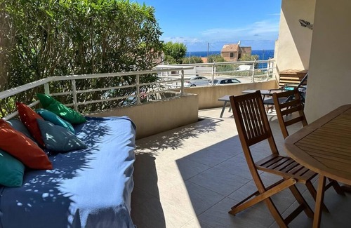New seasonal rental of a new apartment in a beautiful residence in the heart of a picturesque village by the sea.