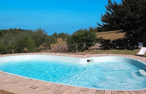 In the blooming nature of the San Bartolo Nature Park, on the rolling hills with olive groves and above the blue sea of the Adriatic coast, you will find the lovingly restored 17th-century farm. The architectural style of the individual apartments corresponds to that of an exclusive and at the same time historic residential building. The quiet natural location invites you to relax and slow down. The apartments on the ground floor or upper floor are rustically and comfortably furnished and have a view of the garden and some also have a fireplace. There are fly screens on all windows. The small town of Vallugola is located between Rimini and Pesaro on the natural bay of Baia di Vallugola. Attractions are the marina and the beautiful pebble beach on the crystal clear Adriatic Sea. Only six kilometers away is the family-friendly seaside resort of Gabicce Mare with its characteristic old town, in whose narrow and steep streets there are shops and workshops.This is what your holiday complex offers: 1 building, 8 residential units, reception, WiFi hotspot, garden, parking lot. Communal outdoor pool 22 sqm (Open from mid-May to mid-September), hydromassage, outdoor shower, loungers, parasolsActivities nearby: The enchanting town of Gabicce Mare, six kilometers away, is one of the most beautiful bathing resorts in the area. It is known for family and sports holidays and is characterized by a fine sandy beach where you will find a wide variety of water sports. From a cultural point of view, excursions to the Roman ruins of Colombarone, the medieval castle of Fiorenzuola di Focara and the fantastic fortresses of Gradara and San Leo are all easily reached by car. Of course, a tour to Rimini with its sights from antiquity and the Middle Ages is also worthwhile. It is also home to Italy's largest miniature park, where you can see Italian and other European buildings