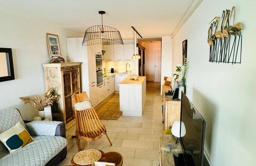 All shops are 2 minutes away: The district known as "de la Corniche" borders the city beaches; effervescent in summer, it offers several kilometers of sand between the sea and the Etang de Thau, each beach offering its atmosphere, as well as a shopping street for all daily needs. For amateurs, a casino is located 150m from the apartment. The neighborhood is welcoming and very well connected to the city for more urban activities.