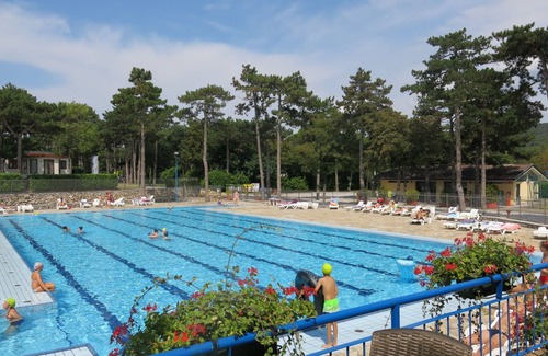Large, child friendly holiday village "Camping Village Mare Pineta". 115 houses in the resort. 6 apartments in the residence. 1 km from the centre of Sistiana, 18 km from the centre of Trieste, in an elevated position on a slope, 1.6 km from the sea, 1.6 km from the beach. For shared use: property 10 ha (fenced) with trees, swimming pool (30 x 20 m, seasonal availability: 01.Jun. - 30.Sep.). Children's pool, outdoor shower, tennis (extra), table tennis, basketball (extra), beach volleyball, children's playground. In the complex: reception, bistro, shopping facilities, washing machine (for shared use, extra). Grocery 100 m, supermarket 1 km, bus stop 200 m, railway station "Trieste Centrale" 18 km, rocky beach "Baia Sistiana" 1.6 km. Nearby attractions: Castello di Duino 2 km, Castello di Miramare 13 km, Sentiero Rilke 350 m. Please note: entertainment in the season. Suitable for families. Obligation to wear bathing caps. Guests are obligated to wear a wristband in the holiday village. From 14.10.2024-17.04.2025 and 13.10.2025-31.03.2026 only the apartments will be availabe. All the facilites will be closed.