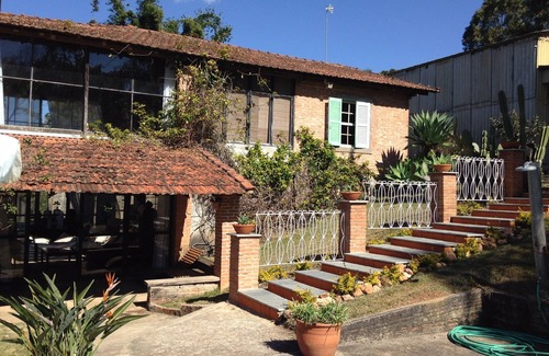 A large, rustic and very cozy cabin, located in a farmhouse just 10 km from the center of Poços de Caldas, with an excellent ecological micro-environment and at 1370 m above sea level! Encounter with nature and with simplicity. Mountain climate and country style. Ideal for enjoying a gourmet leisure among friends. Peace and tranquility with a fantastic positive energy! The house is inserted in a farm of 6 thousand m2 of pure green. Lawns, swimming pools, fruit trees and a huge biological diversity. Countless specimens of birds, plants and flowers. They are two single bedrooms and one bathroom only (for now). It can accommodate 5 guests in the rooms with tranquility. if there are 8 people, some will sleep on mattresses in the charming mezzanine. Kind of like camping! that's the spirit! the house is super clear and airy. The project is based on permaculture, where the use of materials and nature are essential. On clear nights, observing the stars around a fire is mandatory. On cold evenings, a cheese and wine in the living room with fireplace. On sunny days a pool bath and the barbecue with friends! The place is in an urban environment, close to the city and has quick access via surrounding highways.