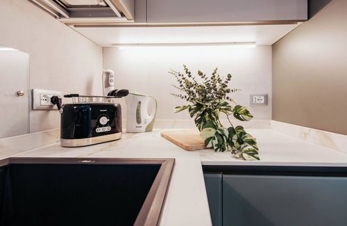 Feel free to prepare a home-cooked meal with the stovetop, dishwasher, and microwave. Bathroom amenities include a hair dryer, a bidet, and towels. Other amenities include bed sheets, an ironing board, air conditioning, and heating.