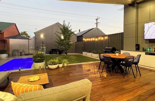 Visiting Wagga or a Staycation? Bring the family and enjoy movie night in the heated pool. The Pool is heated to 32c - kids and adults love it and the ice bath. This resort-style CBD luxury home has everything the executive family requires for comfortable work or recreational trips. Only a 3-minute walk from Baylis Street and the CBD, this location is absolutely central, with everything only a short stroll. The base price is for four guests. No party or external guest get-together policy.