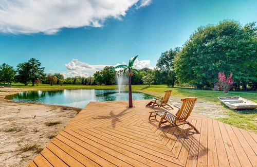 Resort-style oasis with swimming pond, beach, tropical hut & bar is located in Waller. Resort-style oasis with swimming pond, beach, tropical hut & bar provides accommodation, featuring Fireplace/Heating, Barbecue/Outdoor Cooking, Child Friendly, among other amenities. This House features Fireplace/Heating, Barbecue/Outdoor Cooking, Child Friendly, to make your stay a comfortable one.
