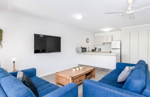 Step into a stylishly appointed 2-bedroom apartment designed for relaxation and convenience. The open-plan living area is bathed in natural light, offering a comfortable couch and a TV with free-to-air channels. A fully equipped kitchen with an electric oven and stovetop allows for home-cooked meals. The two queen-sized bedrooms offer plush bedding, bedside tables, lamps, and blackout blinds for a restful sleep. A spacious bathroom with a separate toilet ensures privacy and functionality. Step outside to the private balcony, an ideal spot for morning coffee or evening drinks. Guests also have access to the resort’s pool, perfect for a refreshing dip. With air conditioning in the living room and bedrooms, secure garage parking, and Wi-Fi available, this apartment offers a stress-free stay in a prime beachside location.