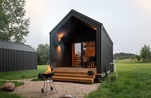 Two exclusive Rest Green micro-houses located on the cliff of the Sventoji River will provide an unforgettable rest to their visitors due to their unique Scandinavian design, minimalistic but high-quality furnished and carefully thought-out interior, wonderful nature and hosts who welcome every guest very warmly. Visitors can enjoy swimming in the river, a beach with sunbeds and umbrellas, football, volleyball, archery, fishing, stargazing with a telescope, bicycles, kayaks, paddleboards, grills.