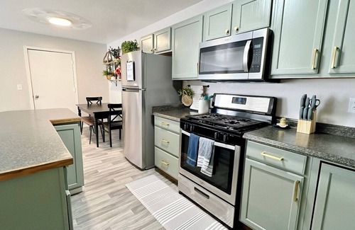 Kitchen is fully stocked with cookware, a crockpot, a blender, anything you have at home, we may have it too. A comfortable dining table that seats 4-6 and a kitchen island with 4 additional seatings so all meals may be enjoyed together. If your trip has a business component, you’ll find a simple workspace to fulfill your professional needs.