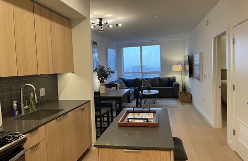 The state-of-the-art kitchen has cookware, bakeware, flatware, and everything you need to kick off your culinary creations. The 4K TV is waiting for you to catch up on all your shows. Laundry in the unit for your convenience. Wifi, utilities, and linens are all included with your stay.