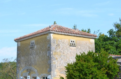 The dovecote is in an old Charentaise farm on a 30 ha property. This Charentais home is atypical in the sense that it is 'open' to the countryside (no high walls closed around the buildings).