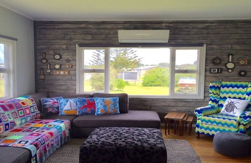 Retide at Peterborough is a family holiday home along the Great Ocean Road on the Shipwreck Coast. It is just meters from the Curdies River and 150 meters from the main surf beach. It has 4 berdrooms with 1 bathroom it sleeps 8 people - 2 Queen size beds, 1 Double bed, and 1 King size bed (or two singles). All bed linen and bath towels are provided.