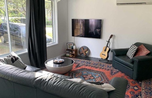 'Retro Beach House' by HolidayCo offers accommodations in Macmasters Beach, 16 miles from Memorial Park. Free Wifi is available throughout the property and MacMasters Beach is a 6-minute walk away. Providing access to a patio with lake views, the air-conditioned vacation home consists of 3 bedrooms. Offering a terrace with sea views, this vacation home also features a TV, a well-equipped kitchen with a dishwasher, an oven, and a microwave, as well as 2 bathrooms with a bath and a hair dryer. The vacation home offers bed linen, towels, and laundry service. Sydney Kingsford Smith Airport is 60 miles from the property.