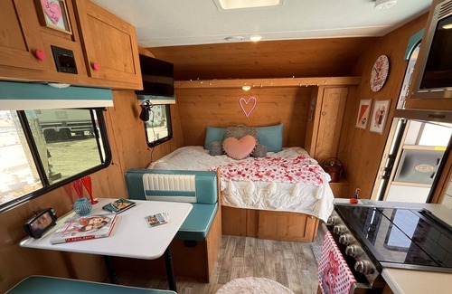 Lucy is cutely decorated with an "I Love Lucy" theme and memorabilia throughout. There's space for 2 adults and up to 2 kids in the queen size bed and bunk beds. The dinette table also comes down and can be made into a sofa/small bed lounger.