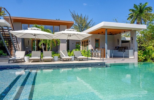 Reverie Villa sits on one acre, is beautifully designed with the indoor outdoor concept with well-manicured gardens that surround the many patios and outdoor tubs. The beauty of the island and tropical lifestyle is brought into the house at every turn. It is equipped with the Wi-Fi, Sonos sound system thorough the house the assures you of the most comfortable stay and enjoyable vacation. Adjoining the pool, is a large heated jacuzzi. We also have a state-of-the-art Alfresco grill by the pool and a gym room.