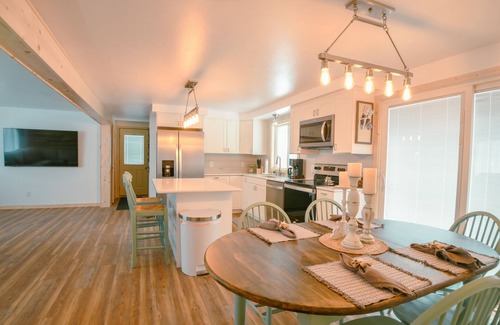 Brand new completely remodeled inside of home finished 15 Feb 2023. This home comfortably sleeps six adults and has an open living room, kitchen, and dining area for cooking and entertaining. Large, secluded backyard with a fire pit and deck and a large driveway to accommodate vehicles and trailers. Pets welcome please see pet fee.Easy access directly from the house to ATV/snowmobile trails, short walking distance to restaurants, bars, grocery store, etc. Large refrigerator with ice maker and water dispenser, coffee maker, air fryer, crockpot, pizza maker, spices, and plenty of pots, pansand large selection of utensils. The kitchen island with two stools is a perfect place to cook and visit. Every room is equipped with a new smart TV. We provide 2 rolls of toilet paper for each bathroom and one full role of paper towel.