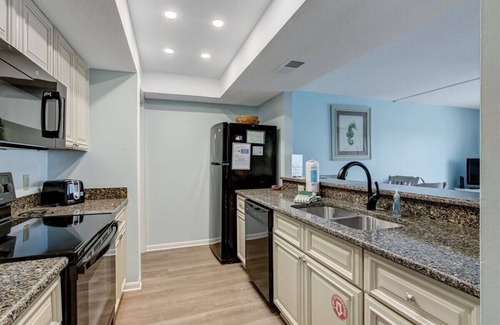This spacious fourth-floor condo offers ample room for your family with 3 bedrooms and 3 bathrooms, including 1 king, 1 queen, and 2 twin beds. Enjoy TV in any of the bedrooms or relax in the living room to catch up on your favorite shows. The large balcony, accessible from both the living room and primary bedroom, is the perfect spot for morning coffee or evening cocktails. Dine in or host a family game night at the dining table with seating for four. You'll find direct beach access, making it convenient to transport all your gear. Plus, the unit comes complete with a full-size washer and dryer, free WiFi, and a fully equipped kitchen, ensuring you have everything you need for a comfortable stay.