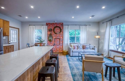 Inside, the cabin is designed with warm, inviting décor and thoughtful amenities, making it the ideal vacation rental near San Marcos, Wimberley, and Austin.