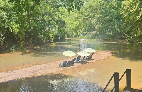 Located on the South Fork Broad river just below Watson Mill Bridge State Park. Take it easy at this unique and tranquil getaway on our farm. This Aframe along the river is perfect for a couples getaway. King size bed in the loft. In the pasture behind the cabin, our friendly goats love attention and are always happy to greet guests.