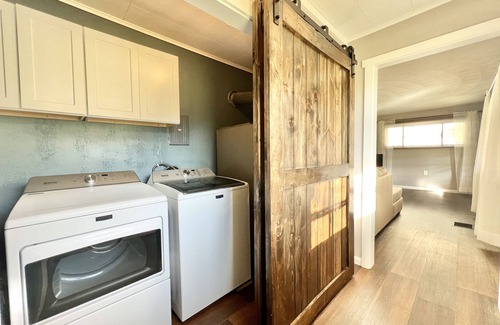 The Kitchen is stocked with dinnerware, cookware, kitchen utensils, microwave, and Keurig. The kitchen, bathroom, and bedroom are all stocked with linens and towels.