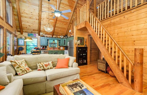 ❤️ River access from a cozy log cabin with picturesque grounds! Beautiful year-round, built for experiencing southern nights! This private, elevated cabin allows you to experience nature and country air, while affording you with all the comforts of home. The cabin is set on 10 acres of tree-filled land and bordered on the west by the beautiful Bogue Chitto River. Light shines through the floor-to-ceiling windows in the lovingly decorated living space. The cabin has an open living/kitchen area. There are 2 private bedrooms on the main floor, a loft sleeping area with pool table, and 3 full bathrooms. The large front porch is furnished with two wooden rockers and a swing, the perfect place for morning coffee or evening stargazing. The more private side porch provides a perfect nook for reading your favorite book. Under the cabin there is a heated inflatable spa, 2 tables for outside dining, as well as additional seating areas. The cabin is warmly decorated with art and prints created by local artists and family members. Some of the decor includes items handed down to the owners by their family and treasures that they have collected through the years. Much of the furniture was refurbished and refinished by the owners. They have tried to provide everything you would need for a comfortable and enjoyable experience. The property is just 3 miles from the main highway, and approximately 10 miles from the city of Mccomb, MS.