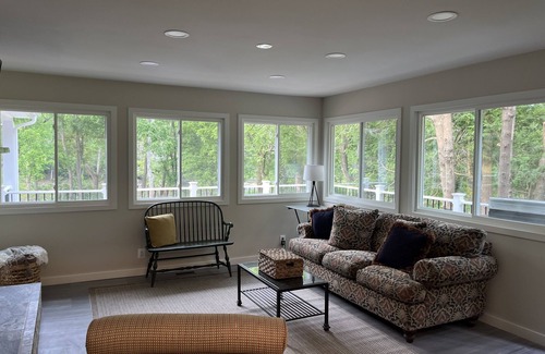 In addition to the 3 bedrooms (2 with queens and 1 with 2 twins), there is a queen pull-out couch for an extra guest or two. Ascending the stairs from the driveway, you will immediately be able to take in the incredible river views from the deck that spans the entire front of the house.