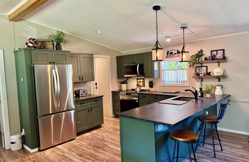 Riverfront Gem with Big Deck, Fishing & Adventure Comfy beds, upgraded beauty has 3 Bedrooms , 2 Bathrooms, and max occupancy of 6 people. The minimum rental for this property is 1 nights, but this can change depending on the season you plan on staying. Previous guests have given good rated it, and VRBO labeled it a top-rated House because of the excellent services rendered by the owner or manager of this House, and has consistently provided great experiences for their guests. Most families or guests that use it recommend it to their friends and some of them are repeat guests. House has a friendly neighborhood, and the Trail has interesting places to visit. If you want to learn more about the House in Trail, such as places to visit and things to do nearby, you can check below to learn more.