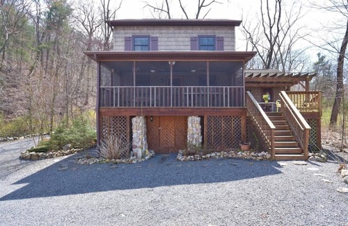 The house is on a wooded lot near the end of a quiet road. A large screened porch faces the river and is great for dining, board games or simply relaxing and listening to the sounds of nature. The porch has lighting as well as ceiling fans to keep things cool. There is additional outdoor seating on the deck and a fire pit just down the back steps. The area is home to abundant wildlife and small creatures including deer, river otter, ground hogs, a variety of birds, bear as well as many insects and reptiles so prepare to convene with nature!