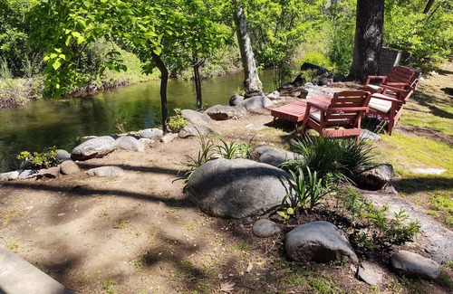 If you are looking for a relaxing vacation and communion with Nature, look no further than here on the North Fork of the Kaweah River. Located in the western foothills of the Central California Sierra Mountains, it’s less than four hours from Los Angeles and the Bay Area and four and a half hours from San Francisco. Situated among the oaks, sycamores, and cedars, this river gem gives you the perfect mix of shade and sun allowing you to explore 1000+ feet of river habitat on this 5+ acre ranch.