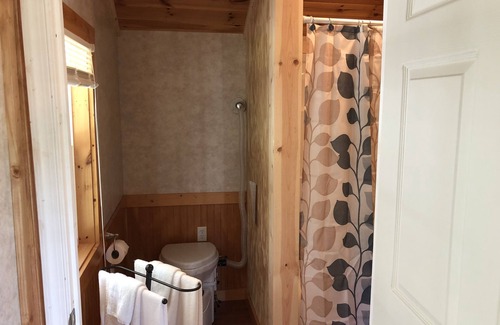 Bathroom: The bathroom has a stand up shower, sink and composting toilet. This is a water-less system. Please follow posted instructions. It is very important to note that a composting system is not like a "traditional" toilet with running water. Instructions are posted in the bathroom.