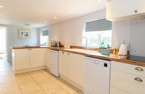 Amenities: Oil central heating. Electric oven and hob, microwave, fridge with ice box, washing machine, tumble dryer, dishwasher. Smart TV and WiFi. Fuel, power, starter pack for open fire inc. in rent. Bed linen and towels inc. in rent. Highchair and travel cot available on request. Private parking available. Enclosed garden with lawn and patio. Two well-behaved dogs welcome, at £25 per pet, not to be left unaccompanied in the property. Sorry, no smoking. Shop 0.3 miles, pub 0.4 miles. Note: Minimum of 3 nights accepted only