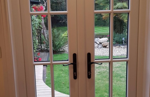 Riverside Lodge has its own wooden deck immediately off the kitchen French doors. Al fresco dining not shared with others. Elsewhere the other two cottages also have their own outside dining spaces. The rest of the two acre garden is effectively shared. Children must be accompanied at all times outside as there is unfenced river, ponds and even a fast flowing weir. The garden is used by guests at their own risk. The lower garden and boardwalks in particular have multiple trip and water hazards.