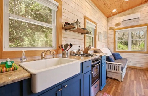 Welcome to “Teeny Tiny in Todd.” The cutest, tiny home ON THE NEW RIVER (a quick walk away). Enjoy fishing, kayaking, or a picnic next to the rushing water! This one bedroom, fully stocked retreat is close to Boone with many local attractions nearby. Enjoy the outdoor fire-pit, dine outside enjoying the river & free coffee (provided). Hot water showers, AC, heat, games, smart TV, and a fully-equipped kitchen. Sleeps 4 between queen bed and full futon (thick mattress for comfort). Pet-friendly.