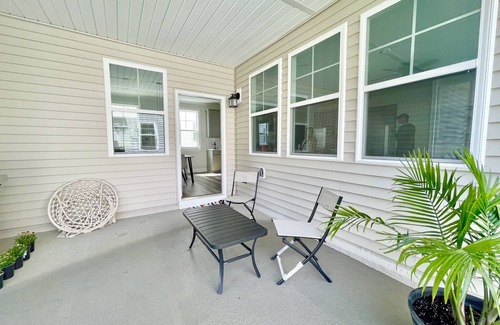 This bedroom features an extremely comfy queen-size bed. This wide room boasts a beautiful view of the home's front yard, which is surrounded by trees all the way down the street. It's just perfect for a very relaxing stay!