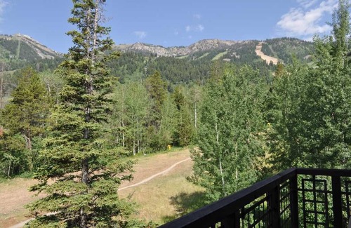 In summer, you're within walking distance to a wide variety of activities in Teton Village. Your family and friends will keep busy in the Grand Adventure Park learning the ropes course, bouncing around on the bungee trampoline, and taking a shot at the climbing wall. You can also enjoy hiking the on-site trails spilling over with beautiful wildflowers, testing your mountain biking skills on lift accessed trails of all ability levels, taking a guided tour of the Via Ferrata climbing routes, and trying out the disc golf. Riding the “Big Red” tram to the top of Rendezvous Mountain for 360-degree views of the Tetons and splendor of the valley spread out below you is a must. Pop into Corbet's Cabin at the top of the tram for their famous homemade waffles.