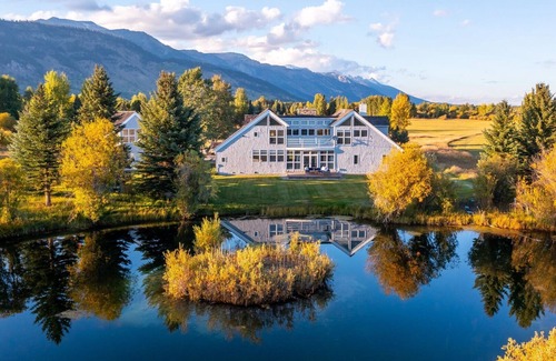 Soaring Summits is a beautifully designed, recently updated home that is nestled on 4.5 acres of private land in Wilson, WY. The property is adjacent to open space, with a large water feature attracting wildlife for impeccable viewing. This 3,400-square-foot, two story home includes access to a detached garage with a large office/multi use space above the garage. This architecturally designed home considers every detail, creating the perfect environment for guests to relax after a long day of adventure. The property features 4 bedrooms, each tastefully designed. The comfortable, family friendly floor plan provides easy access to the expansive manicured lawn beckoning people to linger outside around the water features, watching the western skies transform from a magnificent sunset to a star filled night scene.