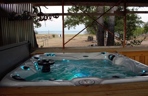 Come stay with us and enjoy the perfect blend of beautiful weather and breathtaking views at our cozy lake front retreat. The “Roadhouse” at ‘Bout Dam Time is a unique funky lakeside duplex with a 1950's Bus converted into a bedroom! This fun cabin is located on Crystal Cove that's perfect for a relaxing getaway! If you’re nature lovers, rock hunters, bird watchers, beach combers, tree huggers, porch sitters, star gazers or just like being outside, this is the place for you! Wake up to a cup of coffee and watch the incredible sunrise over the water! Be one with nature and soak it all in! You can listen to the peaceful songs of many species of birds and watch them soar high above the clouds while you look for shells along the beach. When you’re finished exploring, enjoy a fresh craft brew at our onsite Brewpub under beautiful oak trees or in the relaxing spa with 5 massage chairs (cold in the summer months & hot in the winter months), a gentle breeze and amazing view of the dam. As night falls cozy up by the fire pit (when allowed) and take in the night sky filled with stars! Bring your telescope. When you’re ready to turn in you have all the relaxation of home waiting in the cabin! Come on out and enjoy nature along with the comforts of home! For more info on “Bout Dam Time” visit us at boutdamtime.com