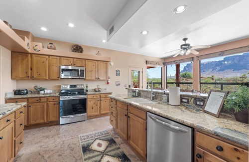 Roadrunner Retreat: Superstition Views & Wildlife is located in Apache Junction. Roadrunner Retreat: Superstition Views & Wildlife provides accommodation, featuring Fireplace/Heating, Kitchen, Air Conditioner, among other amenities. This House features Fireplace/Heating, Kitchen, Air Conditioner, to make your stay a comfortable one.