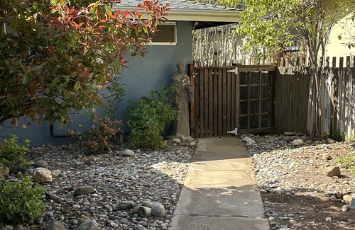 Robin's Nest is a guest house in a quiet residential neighborhood that overlooks the historic town of Mariposa. The guest house has a private entrance, is comfortably furnished and accommodates two people. It offers a full bath, kitchenette, leisure and dining area with an outdoor patio access to a beautifully landscaped yard. It is a perfect getaway or private retreat in the Sierra Foothills. Driving distance to Robin's Nest is 3 minutes from downtown Mariposa. Private parking is available.