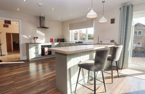 Robin's Rest, a farm stay, consists of an open-plan living space with a Smart TV, selection of books, dining seating for eight, breakfast bar seating two, oven, induction hob, fridge/freezer, microwave, kettle, and toaster, and a utility with a washing machine. The bedrooms consist of a ground-floor king-size with an en-suite with a walk-in shower, basin, heated towel rail, and WC, ground-floor king-size, and two twins. There is a ground-floor bathroom with a bath, shower over, basin, and WC. WiFi, fuel, power, bed linen, and towels are included in the rent. Outside, there is a front garden with gravel, furniture and off-road parking for two cars. One small, well-behaved pet is welcome. Sorry, no smoking. Guests can find a shop in 1.2 miles, and a pub in 1.1 miles. A stay at Robin's Rest promises to be one to remember. Please note: this property only accepts arrival/departure on a Friday or a Monday. If you are wanting to book other than a Friday changeover please contact our call centre to inquire first