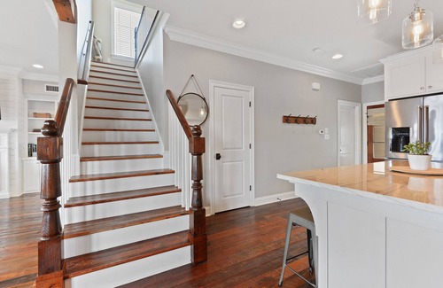 This 4BR/2.5BA, 1900sq ft lake house is conveniently located on the water including upper/lower deck porches and a 25x25ft covered pier providing amazing views. Pier is equipped with Bluetooth receiver, speakers, ladder & whips. It's the perfect place to sit back, relax & take it all in. Comfortably sleeps 10 guest. Hardwood flooring & tile throughout. It has all the amenities you’ll need to live the “river life.” (gas fire place, smart TVs, additional fridge, outdoor gas grill)