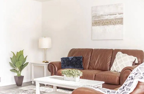 Located on the main level there are 2 large couches with a 55" TV with built-in streaming services such as Netflix, Hulu, and others. The kitchen is fully stocked and will provide all that is needed for a traditional stay. There is a washer and dryer available. There is also a half bath that on the main level