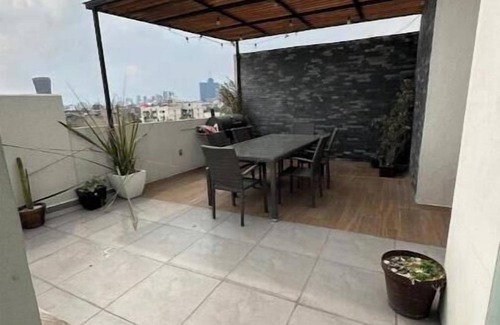 Discover this stylish two-story penthouse in a secure building on Av. Baja California, Roma Sur. Enjoy 24/7 security, an elevator, and assigned parking (small to medium vehicles only).