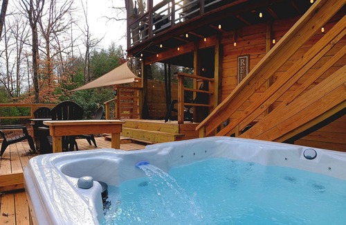 Romantic A-Frame Cabin with Hot Tub + Netflix is located in Lake Lure. Romantic A-Frame Cabin with Hot Tub + Netflix provides accommodation, featuring Security/Safety, Fireplace/Heating, Entertainment, among other amenities. This Cabin features Security/Safety, Fireplace/Heating, Entertainment, to make your stay a comfortable one.