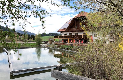 Romantic apartments with pond view, sun terrace and swimming pond | Apartment in Zeutschach