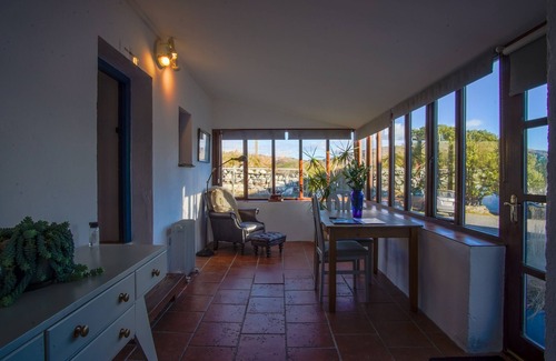 It is a bijou property consisting of a loft bedroom (2 singles or 1 king size) with a small terrace facing the hills above Dunlough bay, a cosy kitchen and living area heated by a wood burning stove and a dining room/sunroom looking onto the farm courtyard. Just 5 mins walk from Dunlough Castle Ruins .
