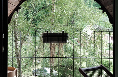 The property also boasts an open - concept living room with a fully equipped kitchen, perfect for preparing meals with all the comforts of home. Large windows flood the space with natural light and offer a stunning view of the surrounding forest, creating a serene backdrop for your stay.