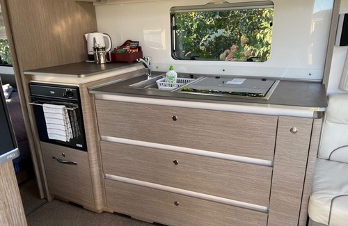 The caravan is well equipped and comfortable with a leather lounge seating area, a small but adequate kitchen, fridge/freezer, 22" flat screen TV with normal channels (no Sky sorry), a Queen size comfortable bed and a small ensuite with a small shower cubicle. There is heating throughout the caravan and extra blankets on board too.