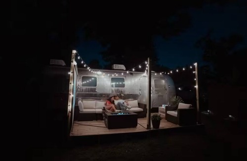 This beautifully renovated Airstream offers a unique retreat, perfect for a romantic getaway or any special occasion. Nestled in a scenic spot, the exterior gives way to a cozy, luxurious interior. The Airstream features all the modern amenities you need, including a compact kitchenette and a chic, spa-like bathroom, ensuring comfort and style. Step outside to a private deck with a fire pit, where you can stargaze and enjoy an outdoor movie, creating unforgettable memories under the night sky