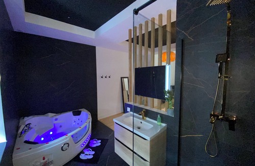 Romantic loft with private Jacuzzi is located in Valbenoite - Le Bernay - Valfuret. Romantic loft with private Jacuzzi provides accommodation, featuring Parking, Bedding/Linens, Fireplace/Heating, among other amenities. This Apartment features Parking, Bedding/Linens, Fireplace/Heating, to make your stay a comfortable one.